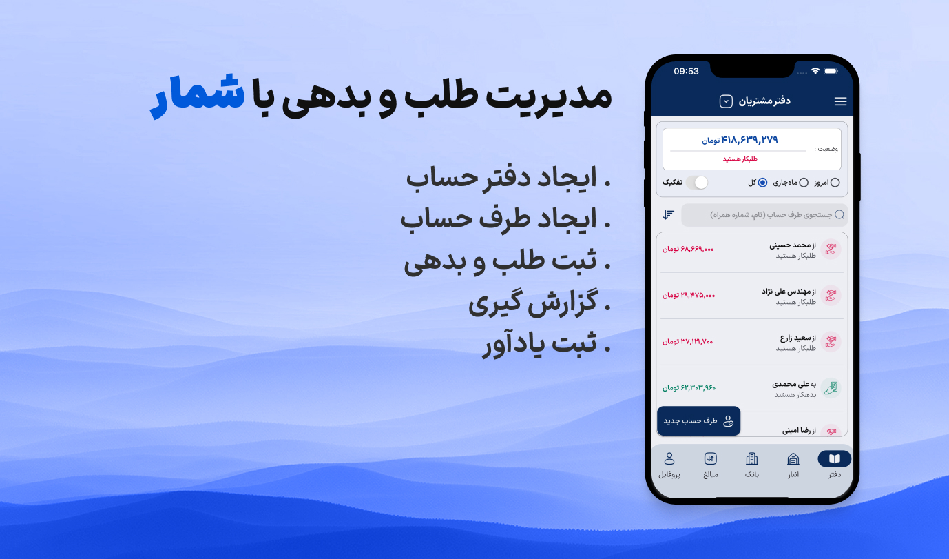 فراموش کردن تاریخ سررسید بدهی ها، سردرگمی در محاسبه مطالبات از دیگران، یا عدم آگاهی از وضعیت کلی مالی، مشکلاتی هستند که بسیاری از ما با آنها دست و پنجه نرم میکنیم. اما خبر خوب این است که با کمک شمار، مدیریت طلب و بدهی نه تنها ساده تر شده، بلکه به فرآیندی دقیق، سازمان یافته و بدون استرس تبدیل شده است!